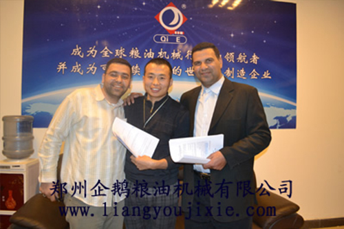 埃及客戶來我廠參觀考察之后,非常認(rèn)同我們廠的實(shí)力,隔天就與我廠簽訂了200噸大豆預(yù)處理浸出精煉生產(chǎn)線的購銷合同,并且承諾以后還會有機(jī)會在其他榨油機(jī)設(shè)備方面的合作。